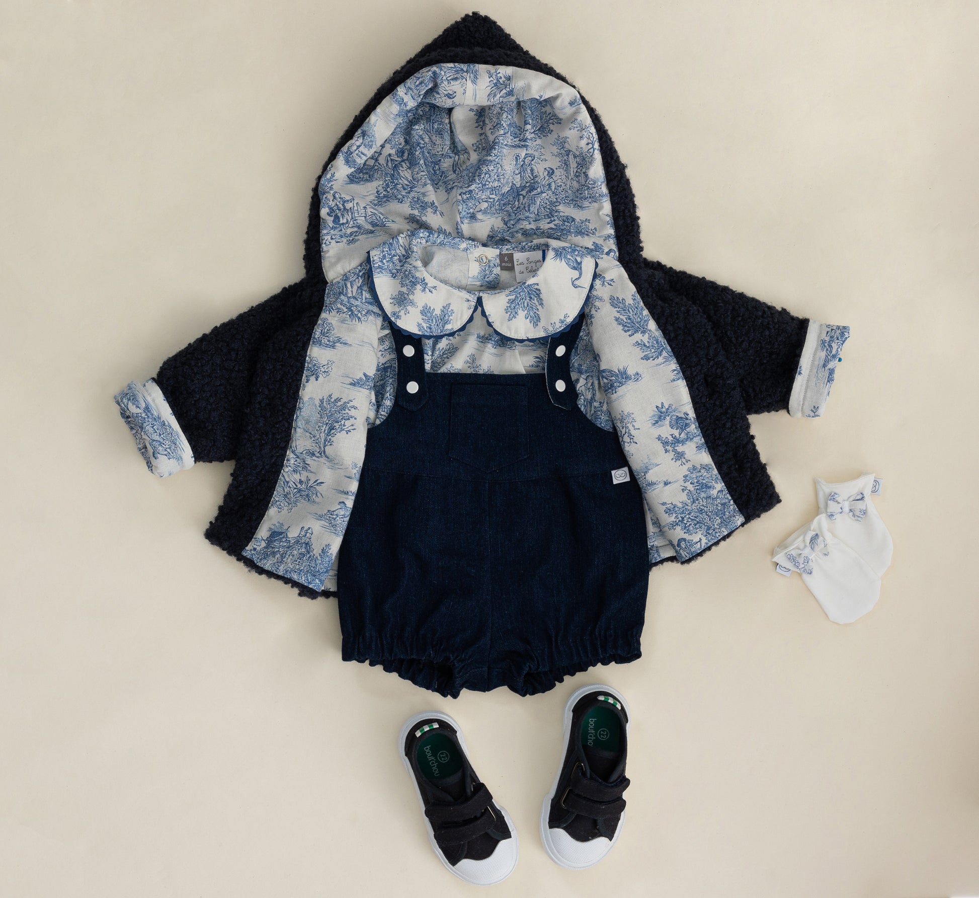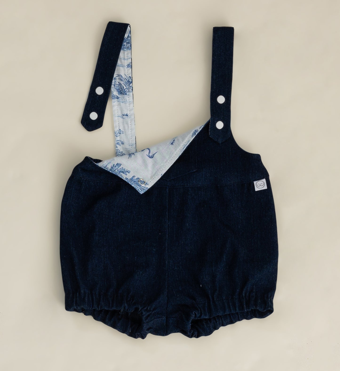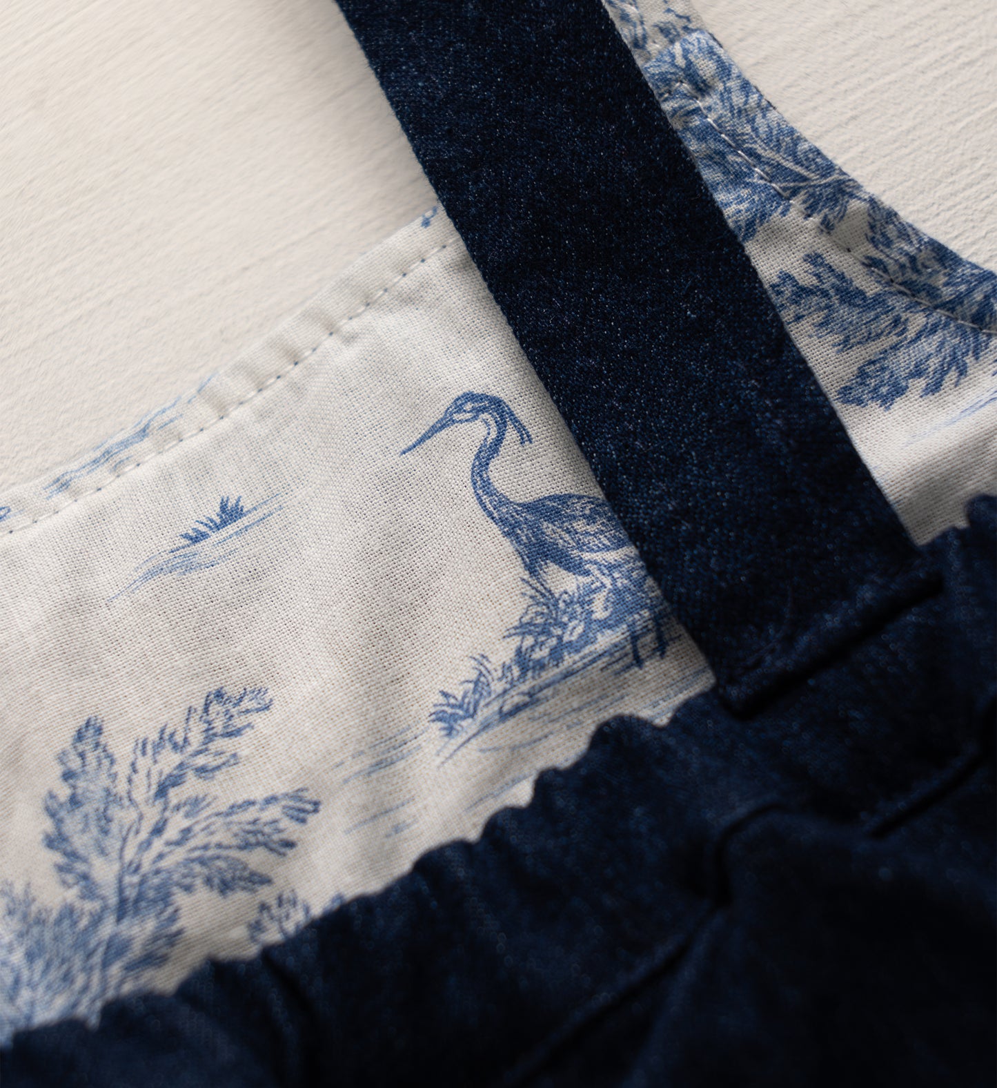 Discover the perfect harmony between tradition and modernity with the Yzée romper. Crafted in soft denim and lined with Toile de Jouy-inspired fabric, it combines contemporary comfort with classic elegance, to accompany little ones with style and tenderness.