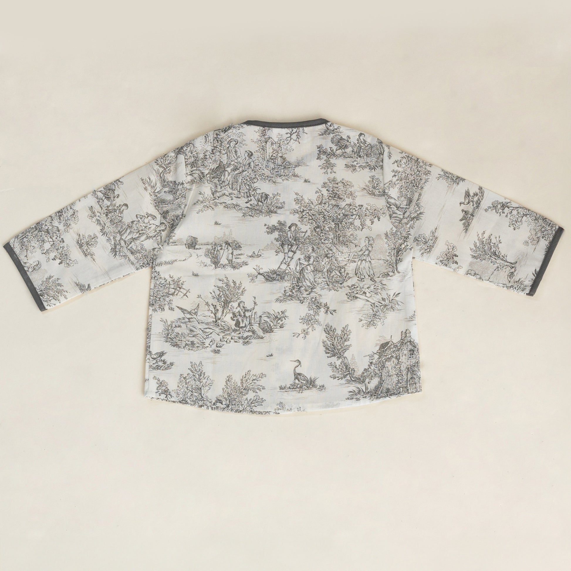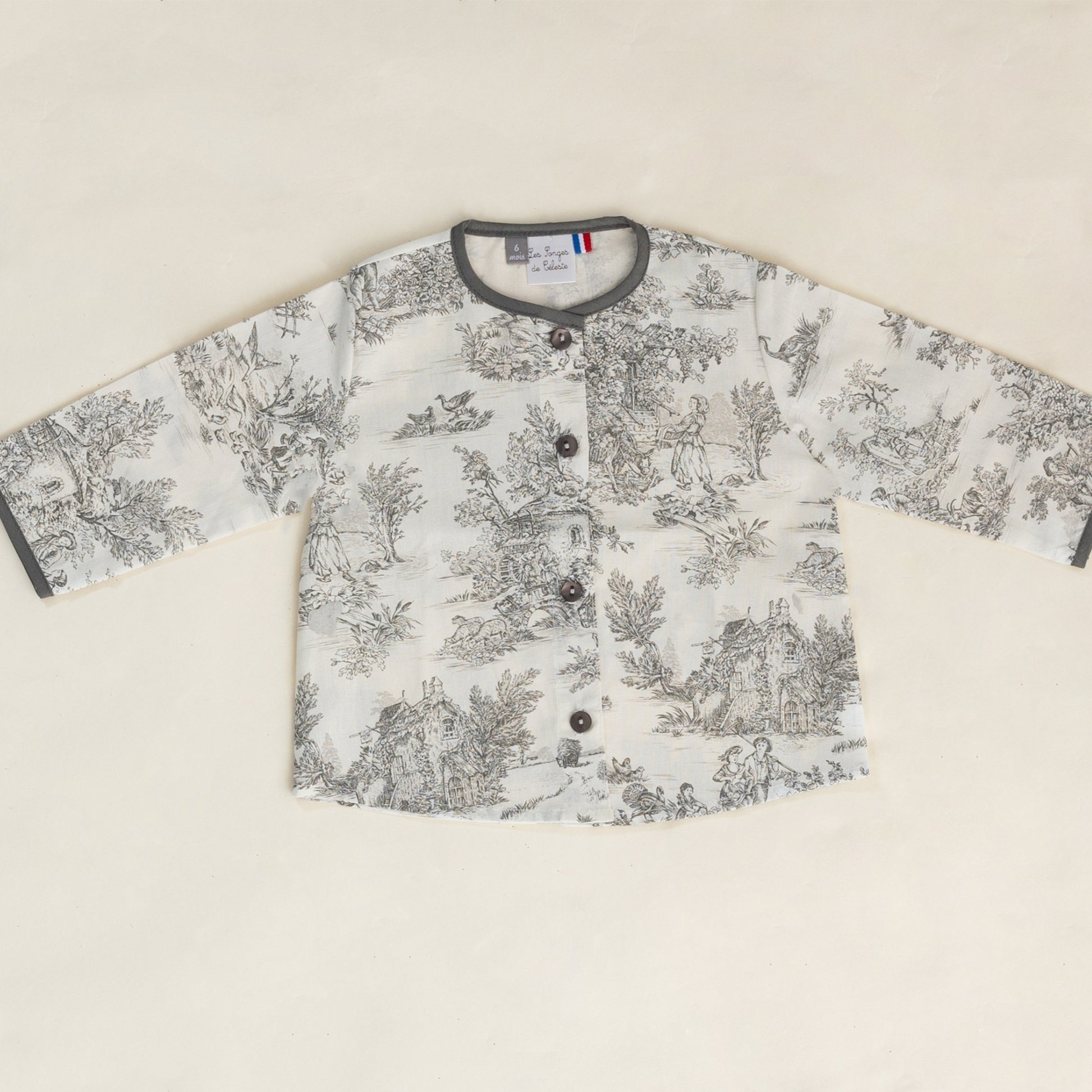 The Célestin shirt embodies the timeless charm of childhood, delicately reimagined with details inspired by Toile de Jouy. Perfect for little boys, it combines French tradition with contemporary refinement.