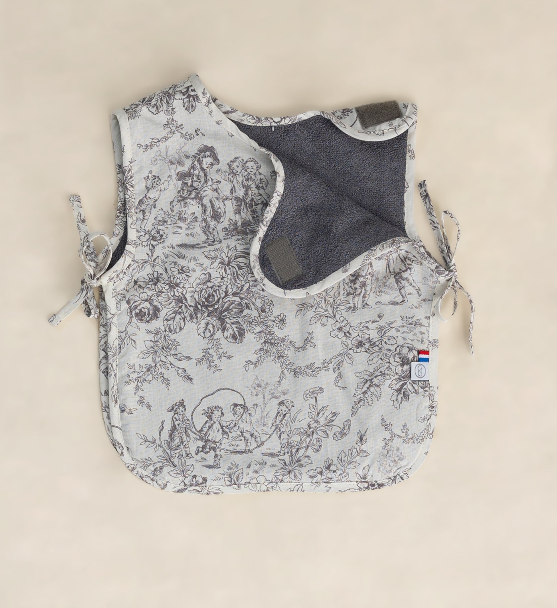 Alliez raffinement et praticité avec notre grand bavoir Romy. Conçu pour accompagner les repas avec élégance, il associe la sophistication d’un motif français emblématique à une protection optimale pour les petits.